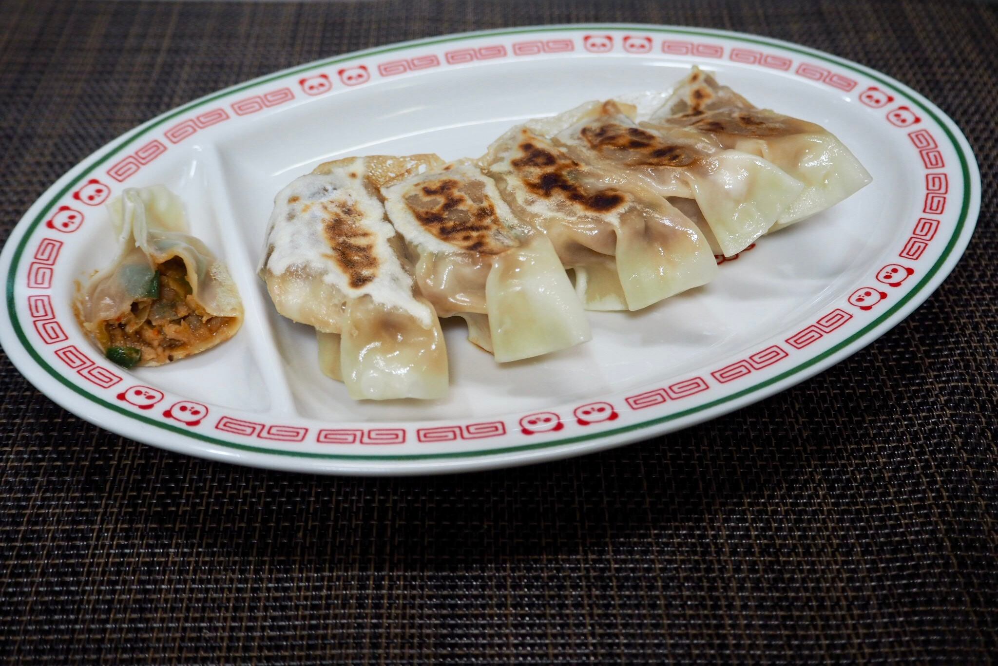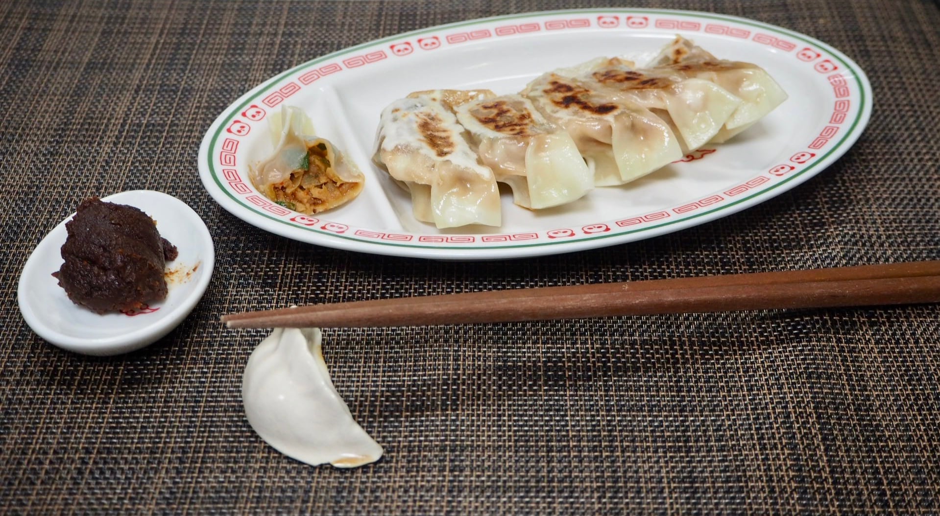 辛味噌餃子はだいたいのお店は味噌ダレで食べますが「タレいらず」をウリにしている とんちゃん ではクセの違う赤味噌を2種類使い唐辛子を餡に練り込み味噌の香りがしっかり、ピリッとくる餃子にしております。